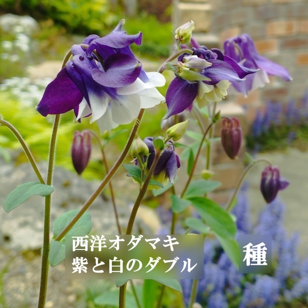 - 秋まき花の種 西洋オダマキ・紫と白30粒以上(八重咲きと一重咲の混合)