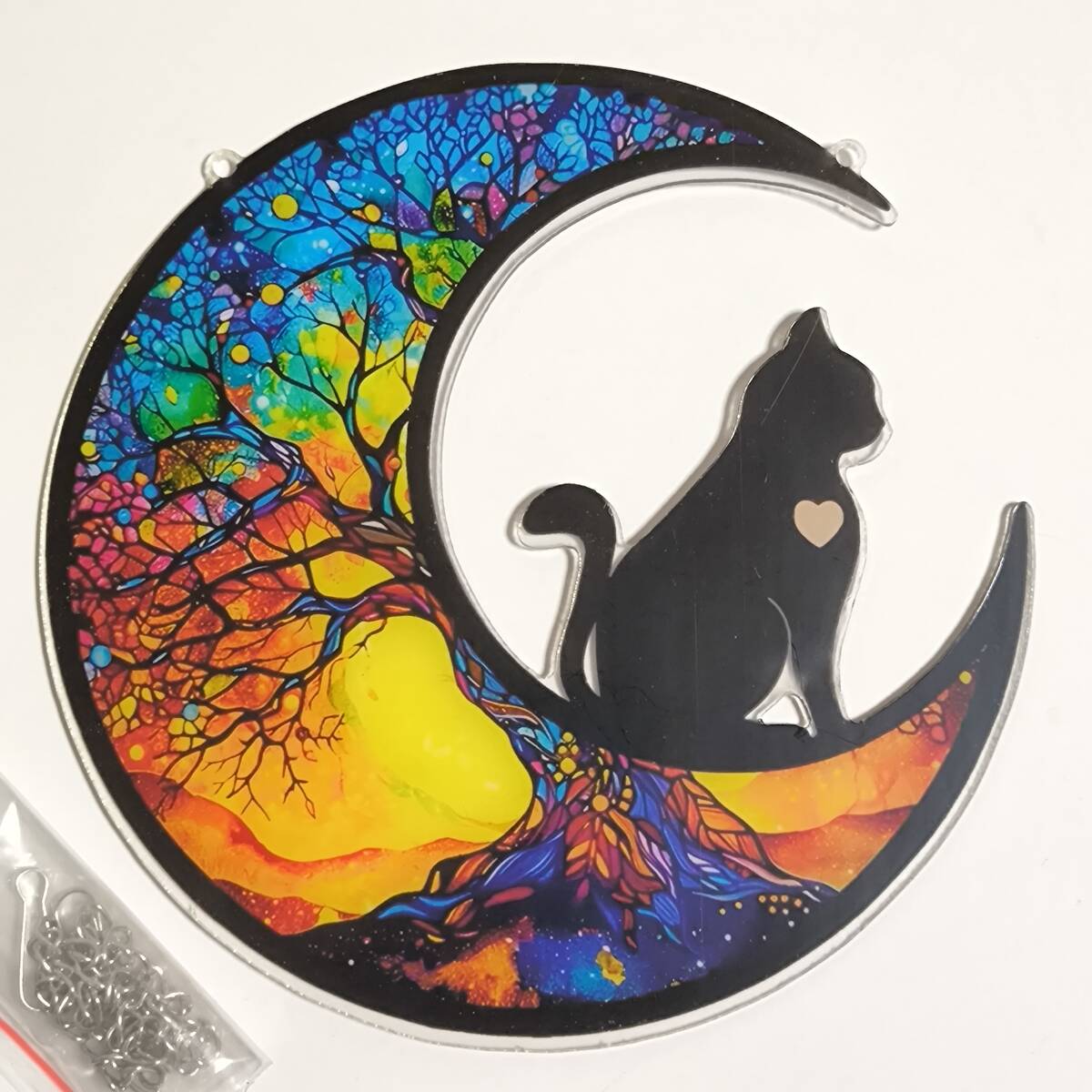 - 【三日月と猫・生命の樹・ハート】アクリルプレート 飾り サンキャッチャー チェーン付き オブジェ お洒落 壁や窓辺の飾りに◎