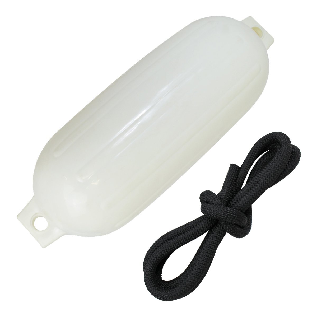 - 【新品即納】『1セット』 ボートフェンダー 580×190mm フェンダー ロープ 2m 黒/ブラック 浮き ブイ フロートロープ 係留ロープ