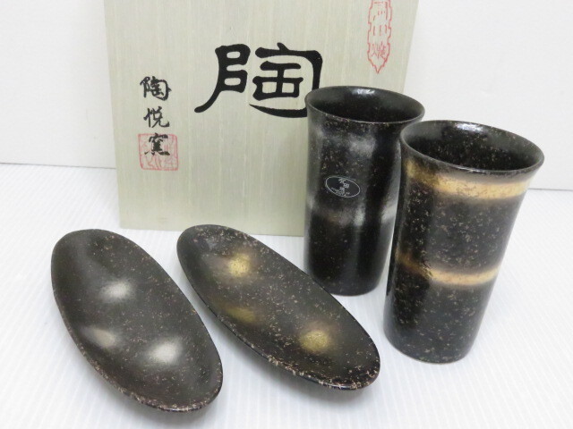 > 【中古未使用品】 有田焼 陶悦窯 輪華 ひとときセット タンブラー 小判皿 ペアセット 〇YR-11929〇