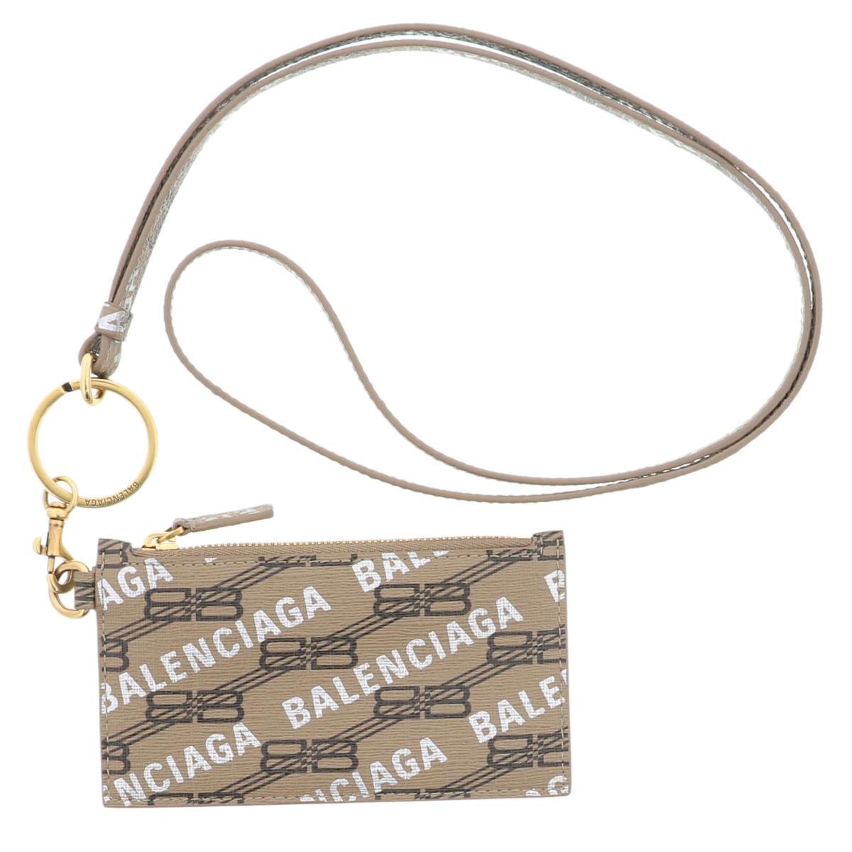 > 【美品】BALENCIAGA (バレンシアガ) キーリング付き カードケース ロゴ総柄 財布 小銭入れ/コインケース 594548 used:A【中古】