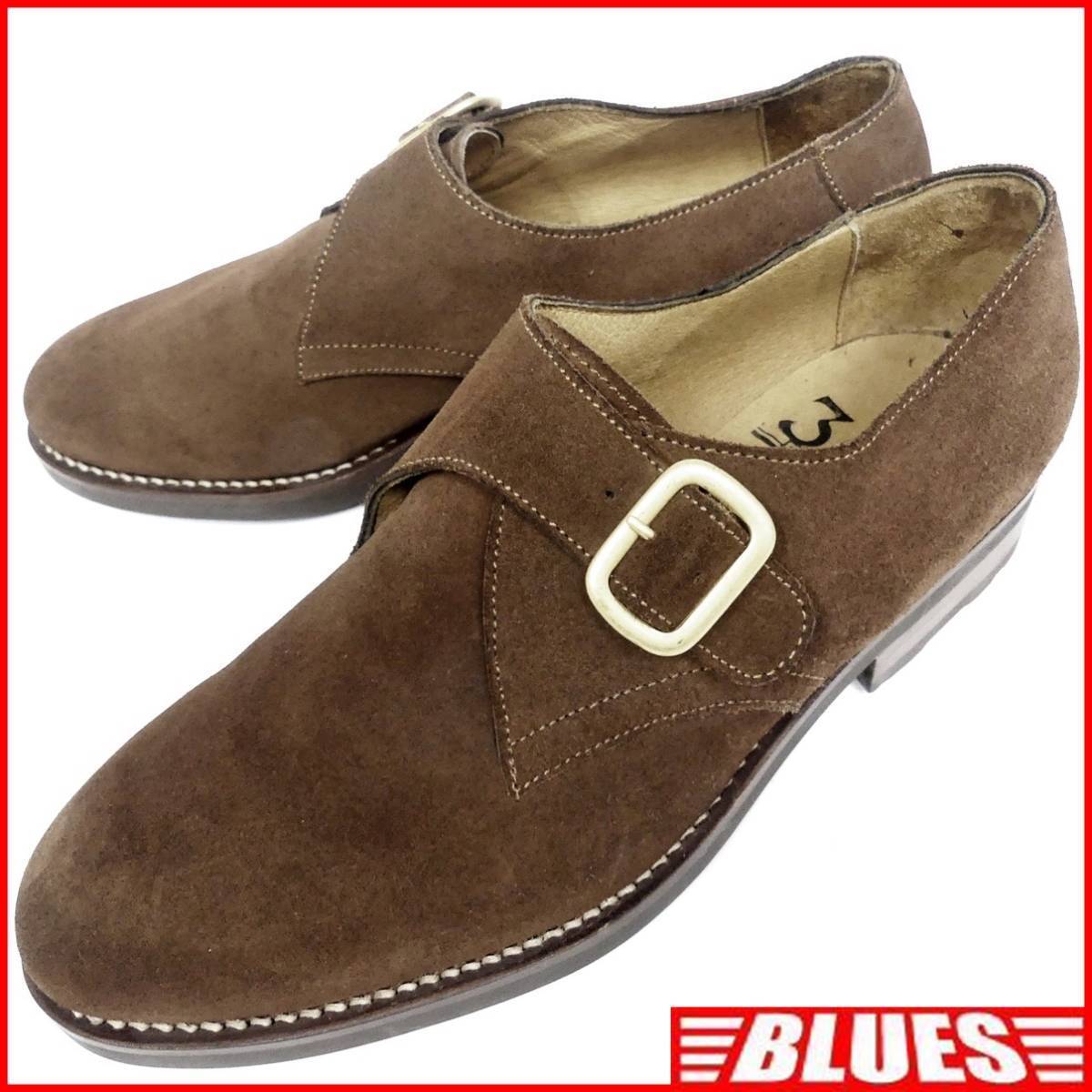 > 即決★308 HEROE'S★25cm レザーモンクストラップシューズ エルデス メンズ 7 茶 スエード 本革 ビジネスシューズ 本皮 ベルトストラップ