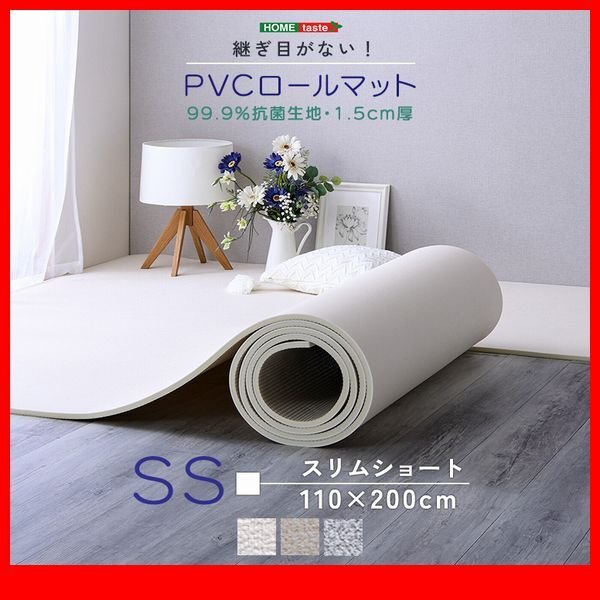 > フロアマット★新品/継ぎ目がないPVCロールマット スリムショート 110×200cm/抗菌 防水 防音 すべり止め/ベージュ グレー アイボリー/zz