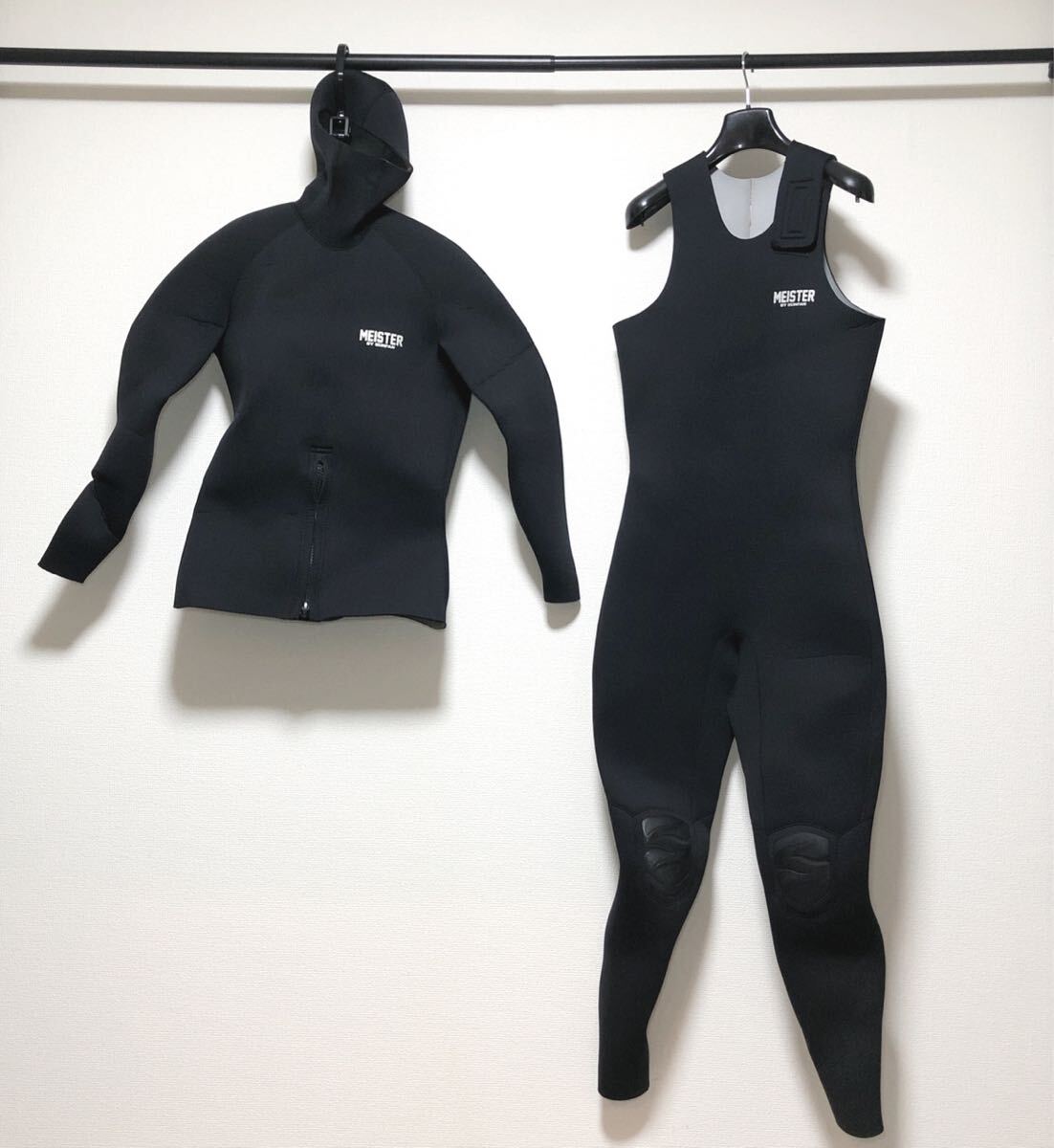 > SUNFUN サンファン MEISTER ウェットスーツ 2ピース ロングジョン 長袖 裏スキン フード ダイビング サーフィン 着丈 約150cm 1003B-25