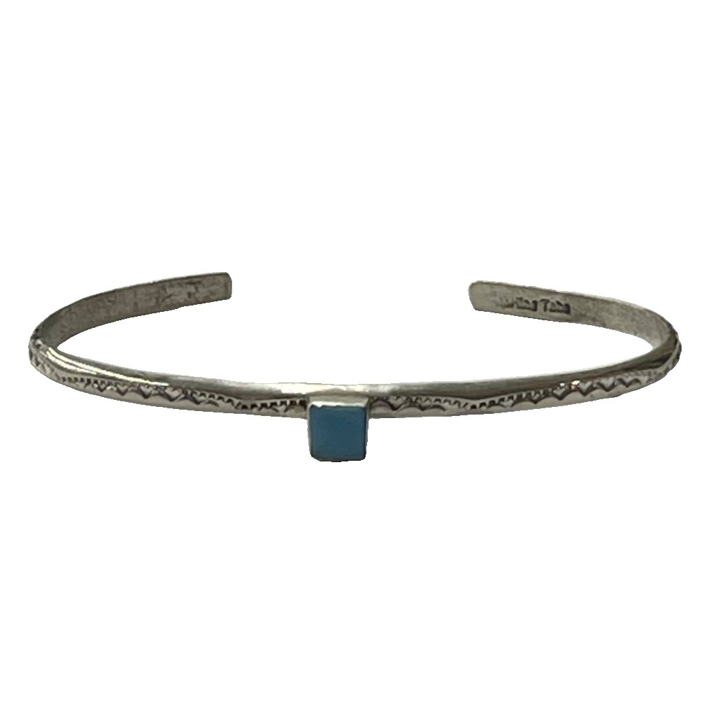 - ロイストンターコイズ Lambert Tahe バングル ブレスレット スクエアカット スタンプワーク sterling刻印 シルバー