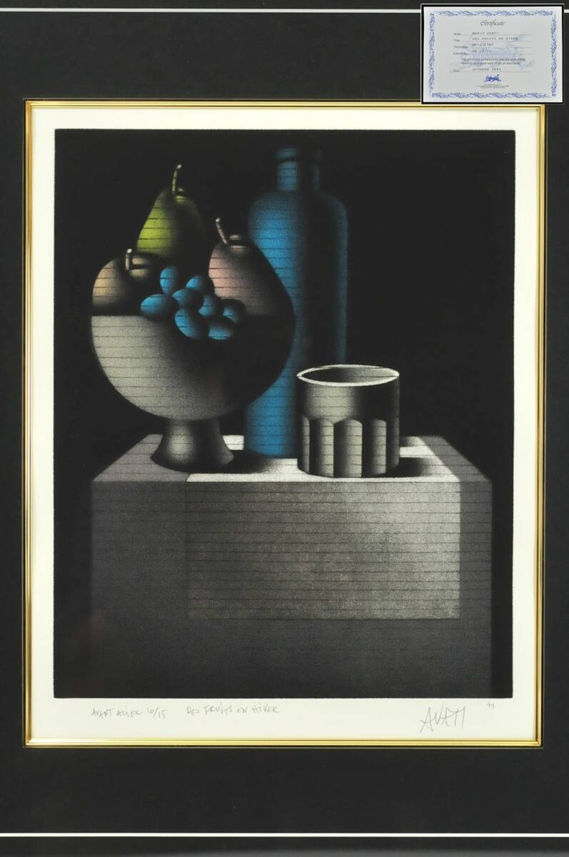 > 【真作】 マリオ・アヴァティ 銅版画 『DES FRUITS EN HIVER』 10/15 黄袋・差箱 額装:61×54cm 03206009-1
