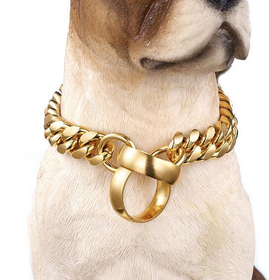 > サイズ選択可 ペット 首輪 ステンレス ドッグ チェーン メタル チョーク ゴールド 18K 大型 犬 ブルドッグ (ゴールド, 20インチ)