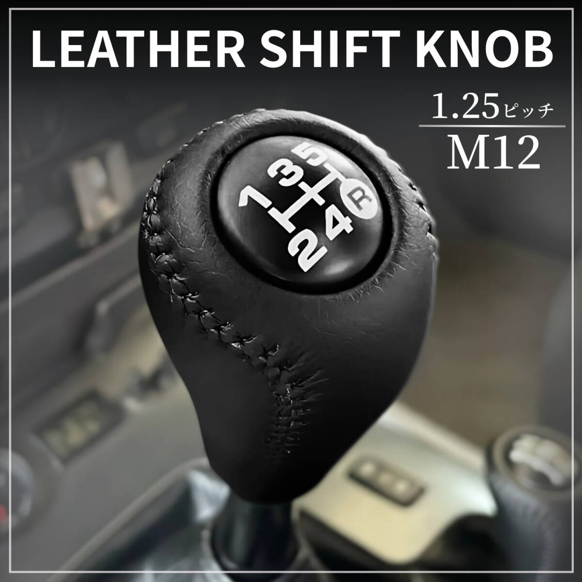 > トヨタ MT用 レザー シフトノブ 5速 ミッション 黒 ダイハツ 日野 スズキ ふそう スバル M12 1.25ピッチ 車 ギアヘッド 交換 ブラック