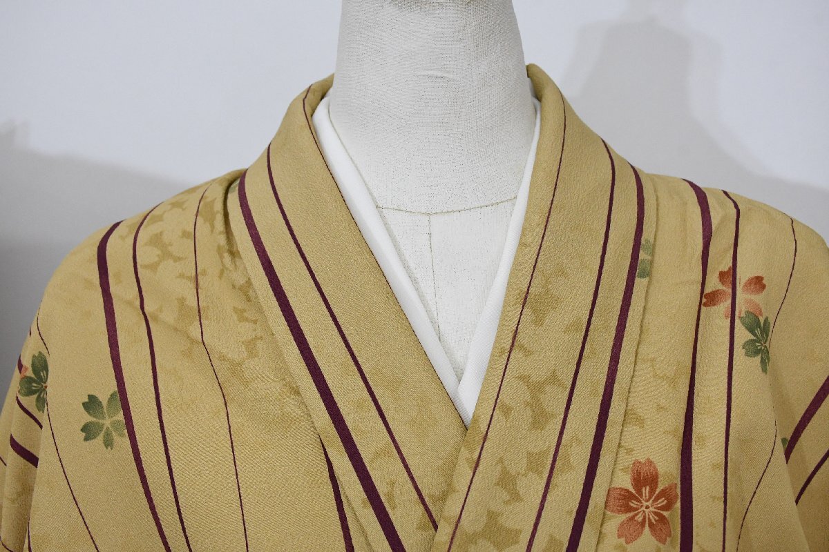 > 小紋 着物 単衣 桜 縞 身丈159cm 裄丈69cm ★ kb-7171 桜庭呉服店