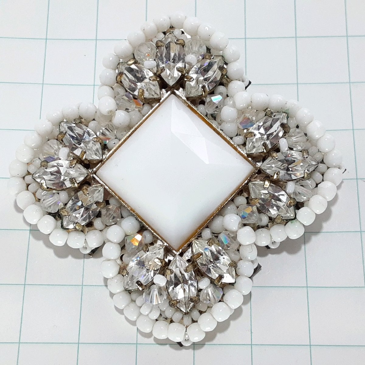 - 送料無料)ビンテージ☆クリアラインストーン ビーズアクセサリー☆アンティーク ブローチ A32427