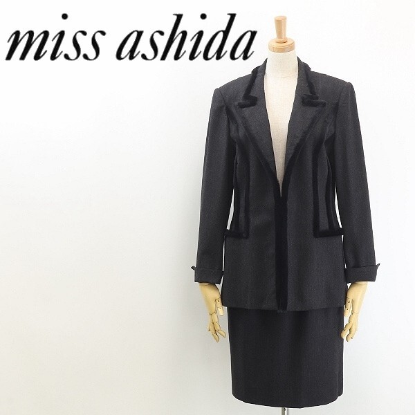 - 【HA564】美品◆miss ashida ミスアシダ ストレッチ ウール ミンクファー使い ジャケット&スカート スーツ セットアップ チャコール 9