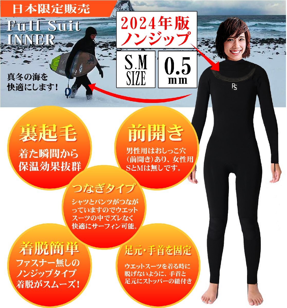 - 2024年版★女性用 ノンジップ 真冬用 裏起毛 上下つなぎタイプ インナー★ドライスーツ、セミドライスーツ ウエットスーツの中用インナー