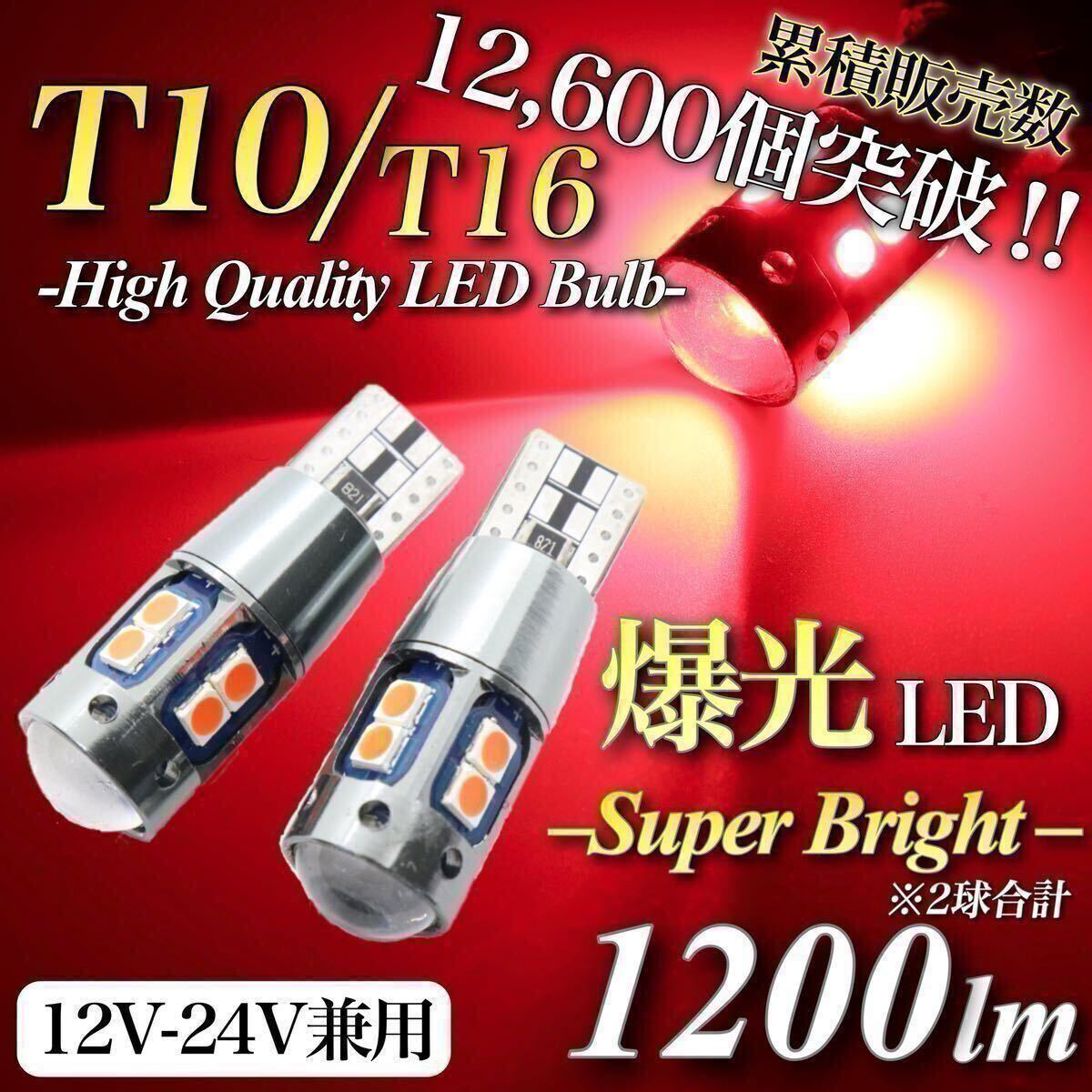 - 【送料無料】 爆光 大人気 モデル 12V 24V 対応 レッド T10 T15 T16 兼用 無極性 キャンセラー内蔵 LED ウェッジ球 2個入 ポジション球
