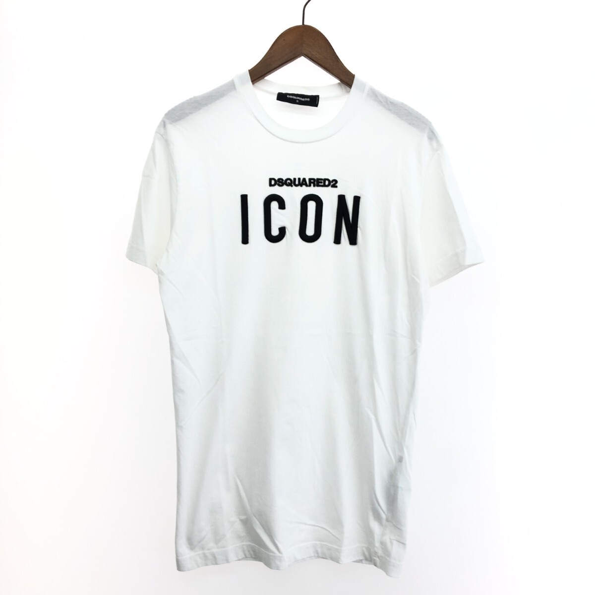 - 良好◆Dsquared2 ディースクエアード 半袖カットソー サイズ:S ICON/刺繍ロゴ ホワイト メンズ
