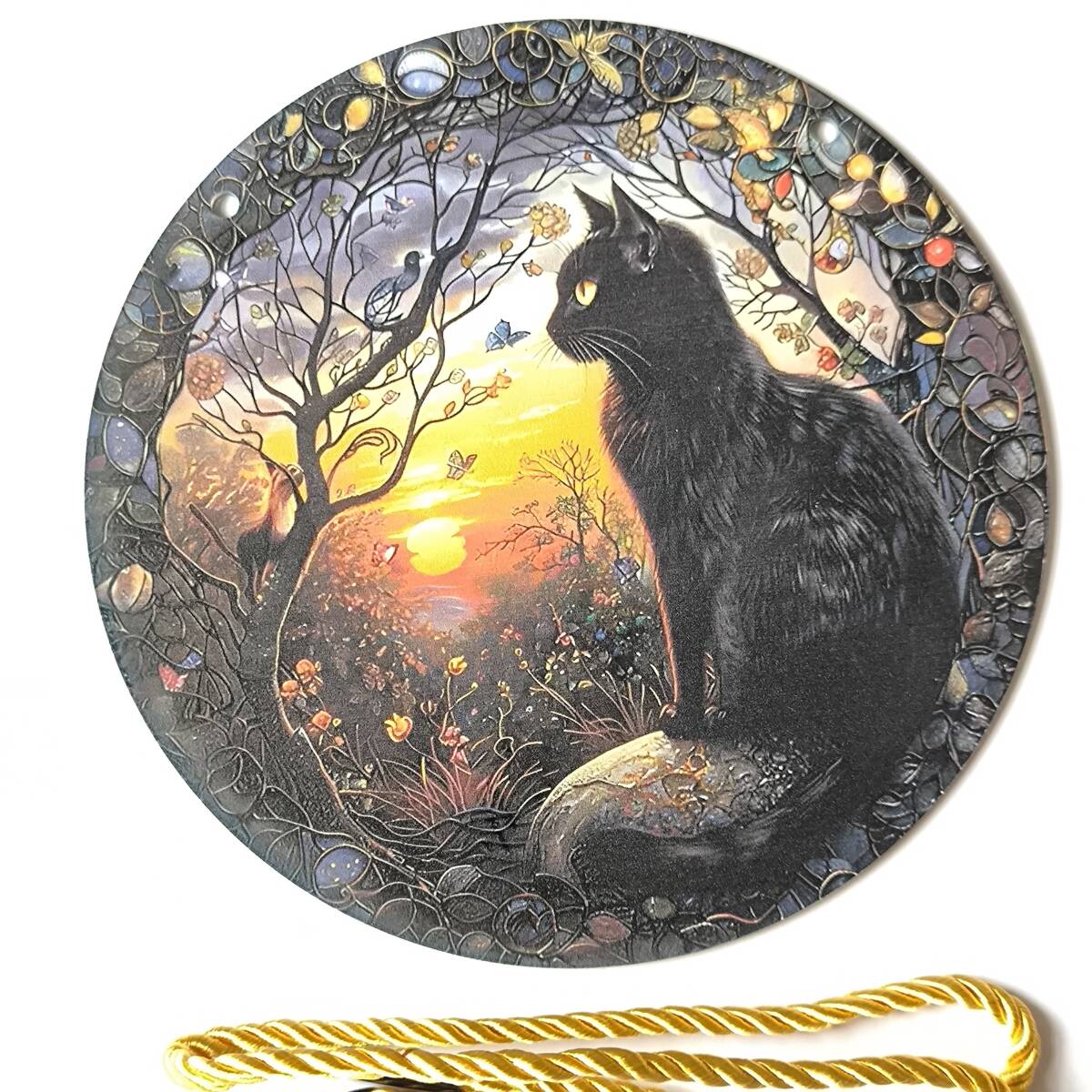 - 【黒猫と夕日】アクリルプレート 飾り サンキャッチャー 紐付き オブジェ お洒落 壁や窓辺の飾りに◎◎
