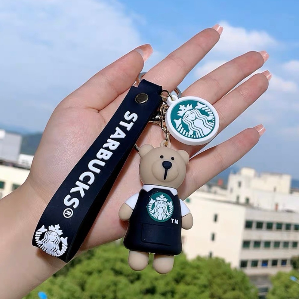 - スタバ ベアブリック キーホルダー ブラック ストラップ付き バッグチャーム キーチェーン クマ 黒