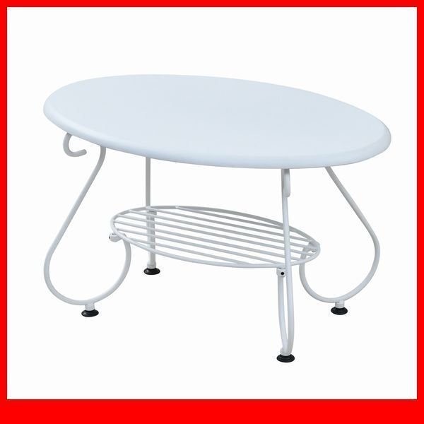- ダイニングテーブル★ヨーロッパ風 アイアン家具 ローテーブル/楕円 センターテーブル/姫系 アンティーク調/ホワイト 白家具/iria-0052/a3