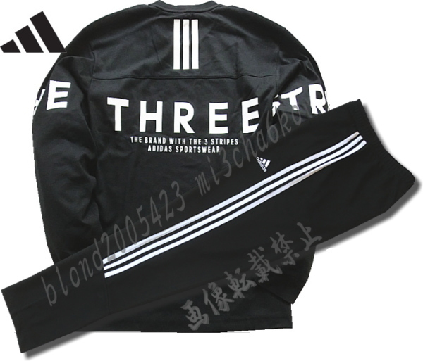 > ■新品【adidas】アディダス 背面BIGロゴ ルーズフィット 速乾生地 クルーネックシャツ&3ラインパンツ上下■BK/BK(XL)