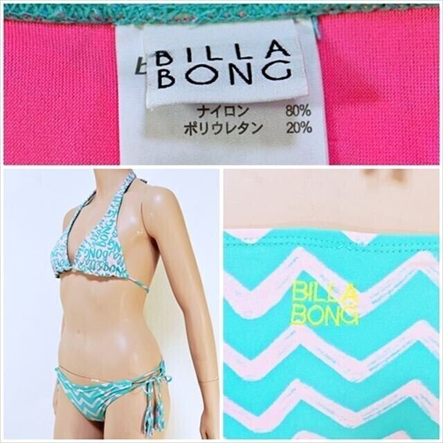 > PE3-Y15☆//BILLABONGビラボン♪ギザギザ柄ターコイズカラー☆Lサイズ*ホルターネックビキニ※一番安価な送料はゆうパケット250円♪