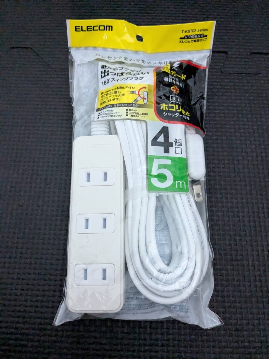 - ◎0710u0421 エレコム 電源タップ 雷ガード スウィングプラグ ほこりシャッター付 4個口 5m ホワイト T-KST02-22450WH