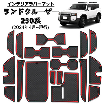 > ランドクルーザー ランクル250系 ラバーマット インテリアパネル フロアマット カップホルダー 滑り止め ブラック×レッド
