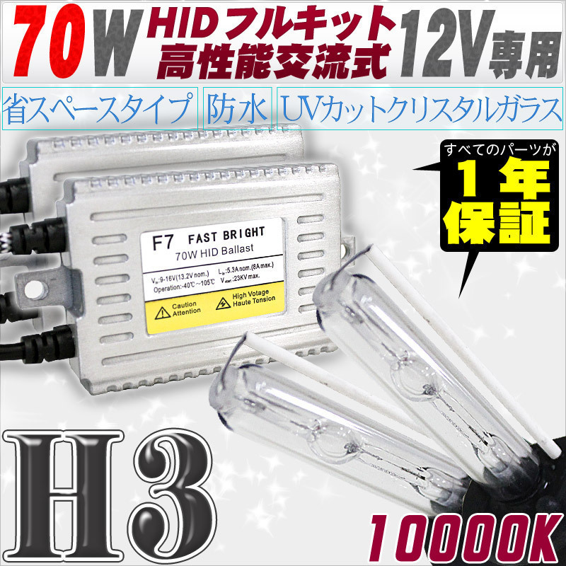 - 高性能 HIDキット 70W H3 10000K 【交流式バラスト&クリスタルガラスバーナー】 12V用