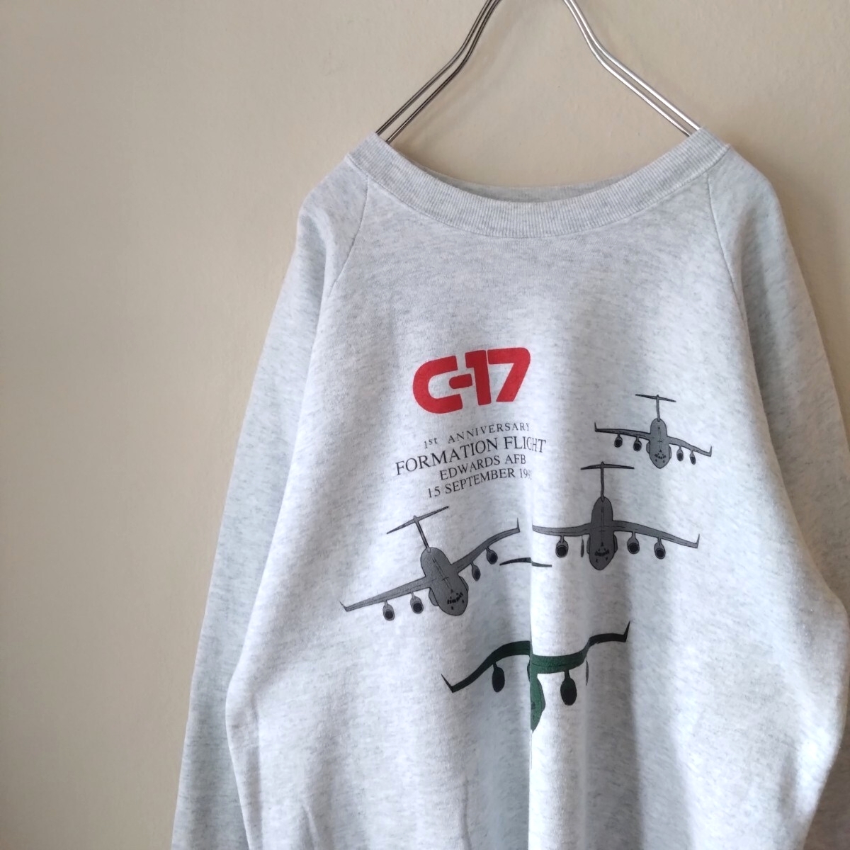 - 90s フルーツオブザルーム スウェット ジェット機 c-17 グレー /N9017