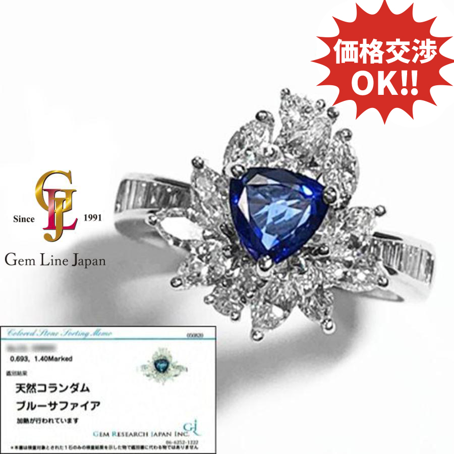 - GRJソーティング付 ブルーサファイア 0.693ct ダイヤモンド 1.40ct プラチナ リング