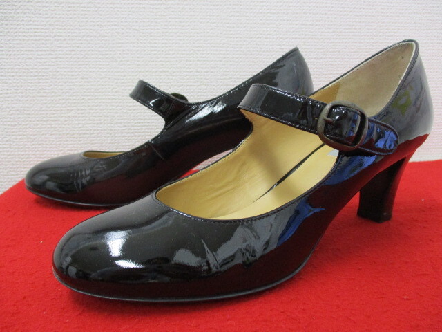 - 【11573】良品★マーガレットハウエル MARGARET HOWELL idea★ストラップ エナメルレザーパンプス / サイズ24・1/2 黒 日本製