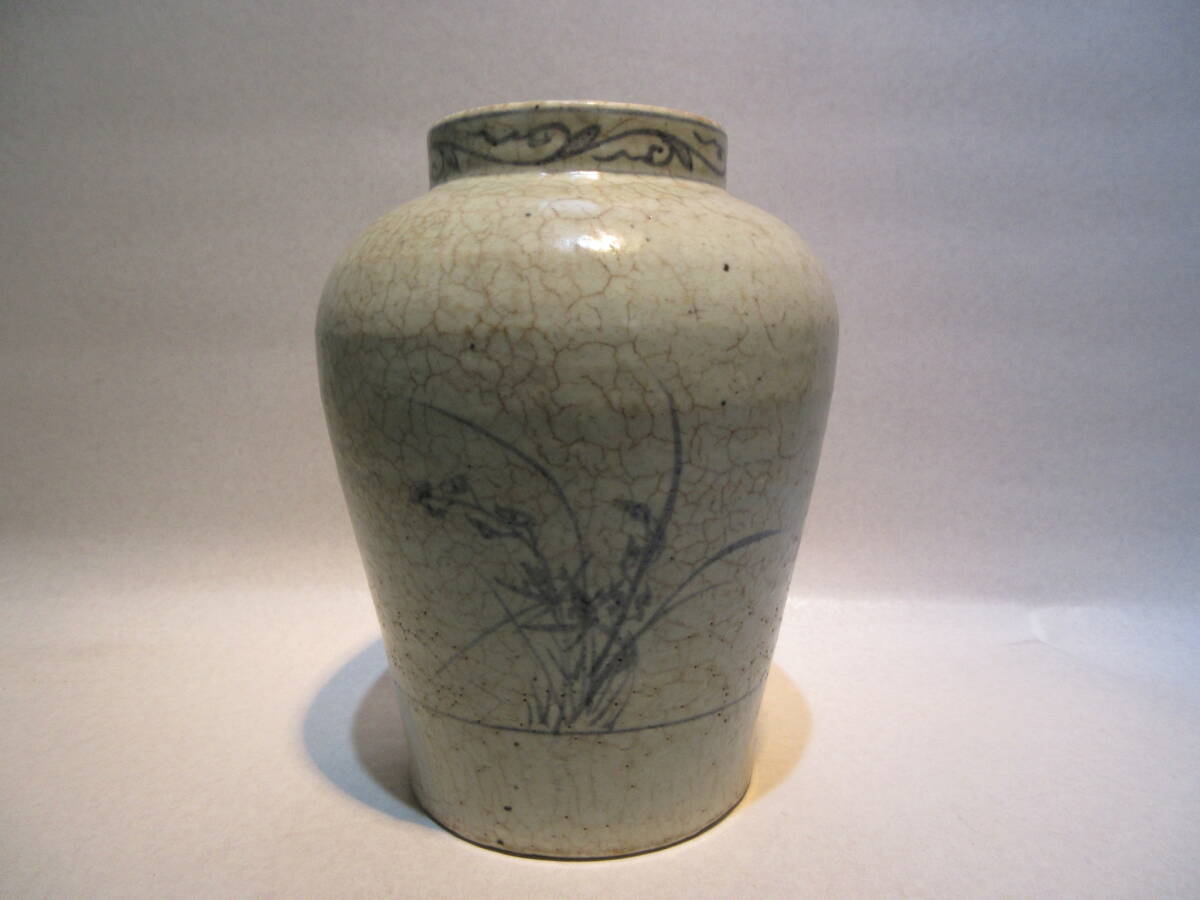 - T2523 南紀徳川家旧蔵品 三つ葉葵紋 李朝 分院 草花文壷 高25.5cm