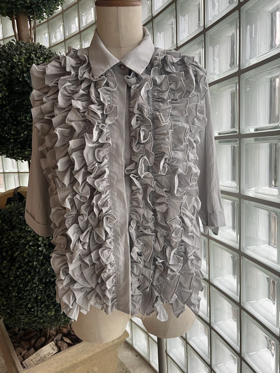 - RIKO リコ★グレー フリルブラウス Fサイズ USED♪c