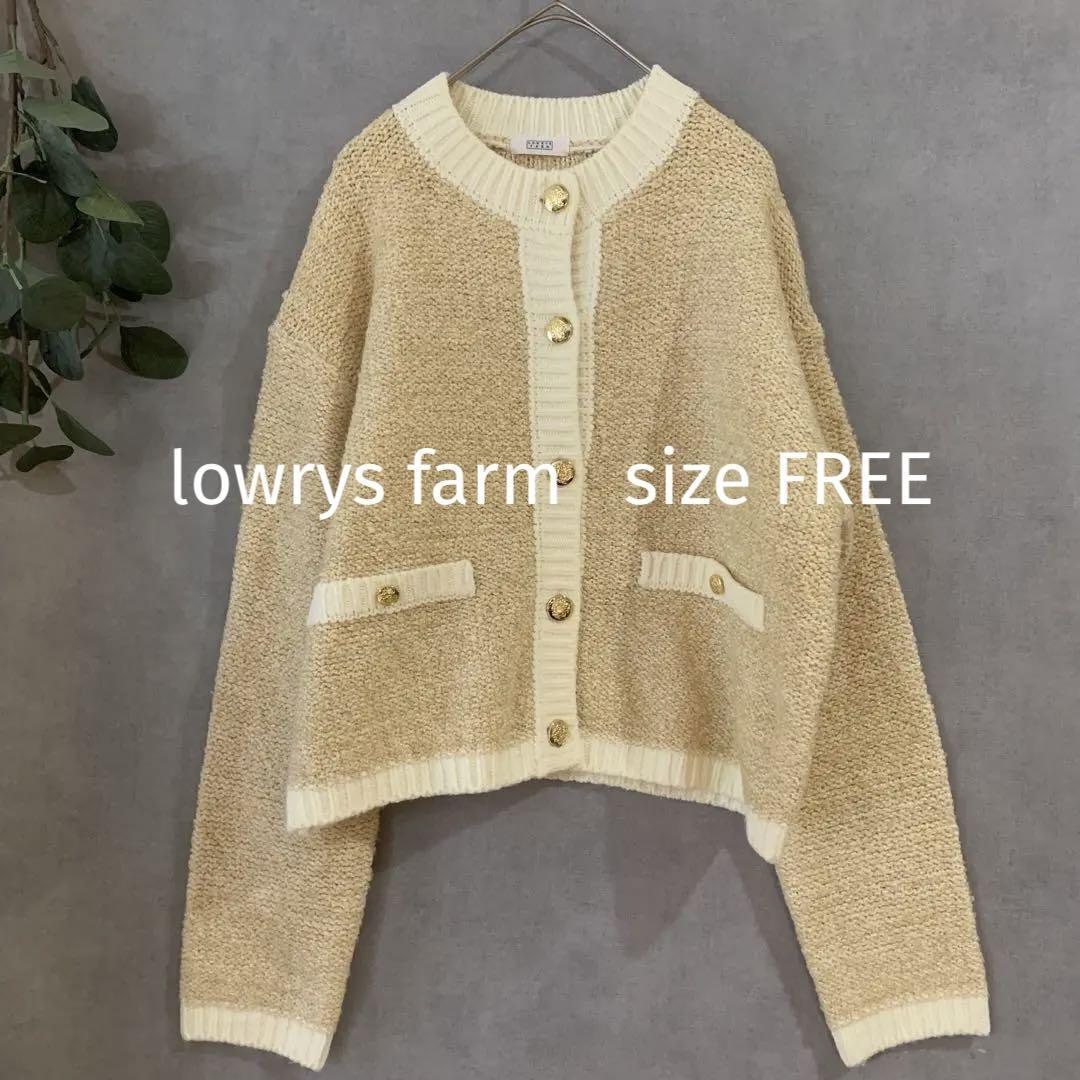 - 美品☆lowrys farm 配色カーディガン ベージュ 金ボタン バイカラー