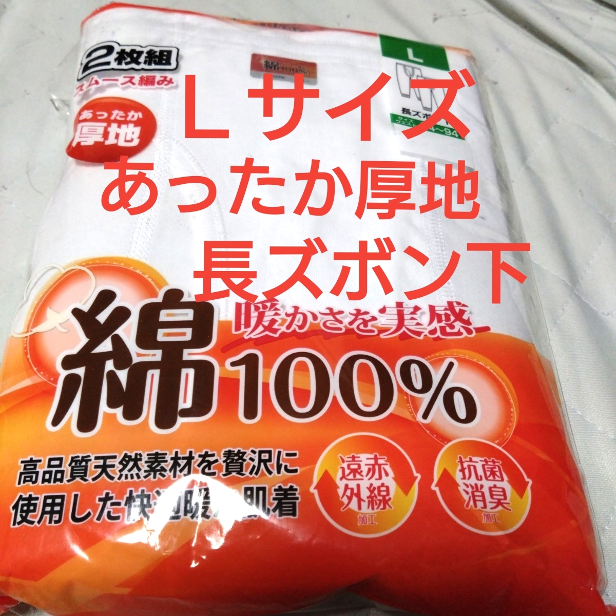 - ①メンズ 紳士 長ズボン下 2枚組 綿100% 遠赤外線加工 抗菌防臭 保温 あったか 厚地 Lサイズ スムース編み