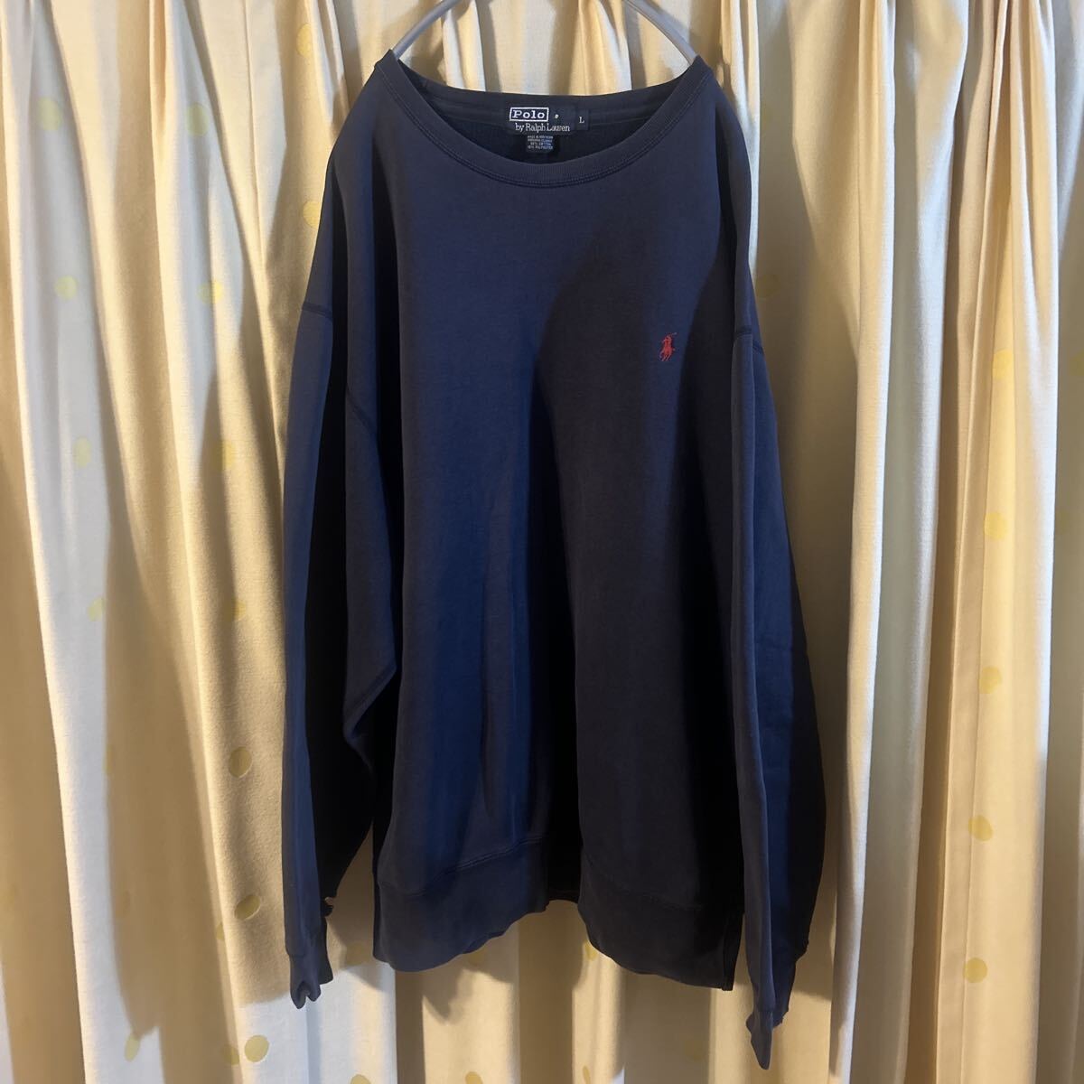 - 90S POLO ラルフローレン オーバーサイズ スウェット トレーナー サイズL ネイビー フェード