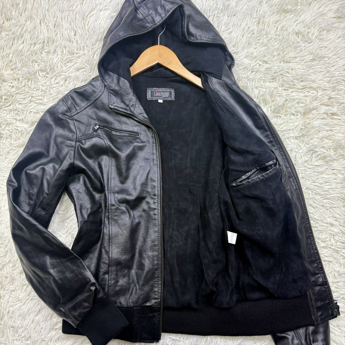 > ◎美品/希少XL相当◎end more【極上オールレザー】レザージャケット パーカー ブルゾン 本革 ライダース フルジップ ブラック 黒 50 LL