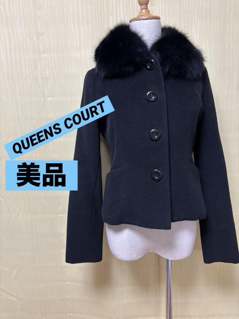 - クイーンズコート M S ショート コート レディース 黒 ウール アンゴラ
