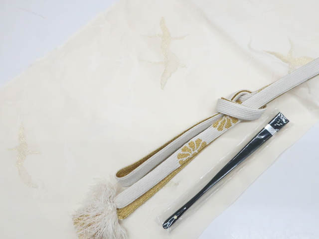 - 《古美術京松》リサイクル着物 和装小物 帯揚げ帯締めセット 帯揚 帯締 礼装用 縫取 鶴文 金糸 高麗組 末広付 kyo7w07-802