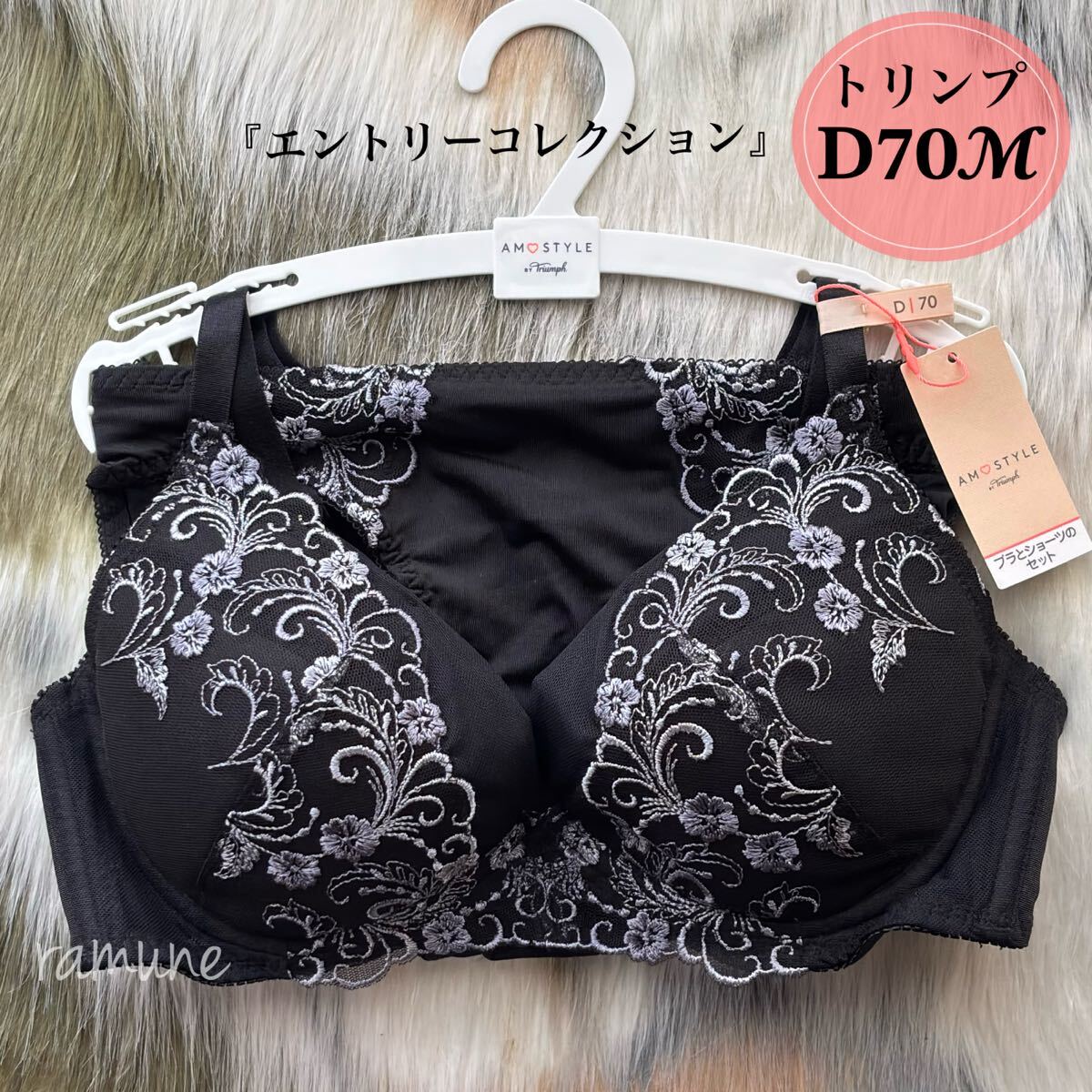 - 【トリンプ*D70M*ブラック】新品 Triumph 寄せブラ&ショーツ クラシックフラワー パッド付き 谷間を作る 美バスト ブラジャー Dカップ