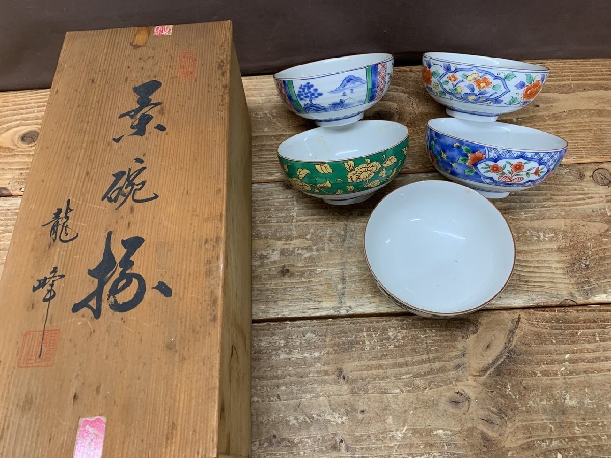- 【Y8-5066】龍峯窯 茶碗 湯呑 5客揃 絵変り 食事揃 和食器 食器 陶磁器 ごはん茶碗 セット 東京引取可【千円市場】