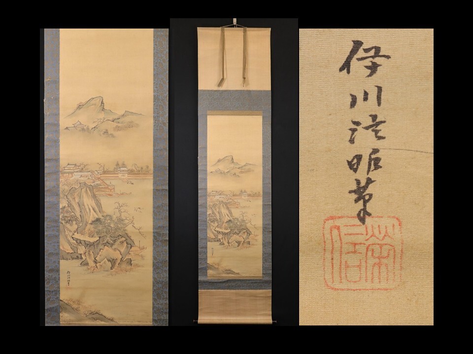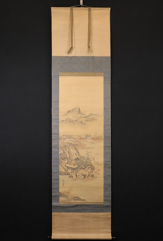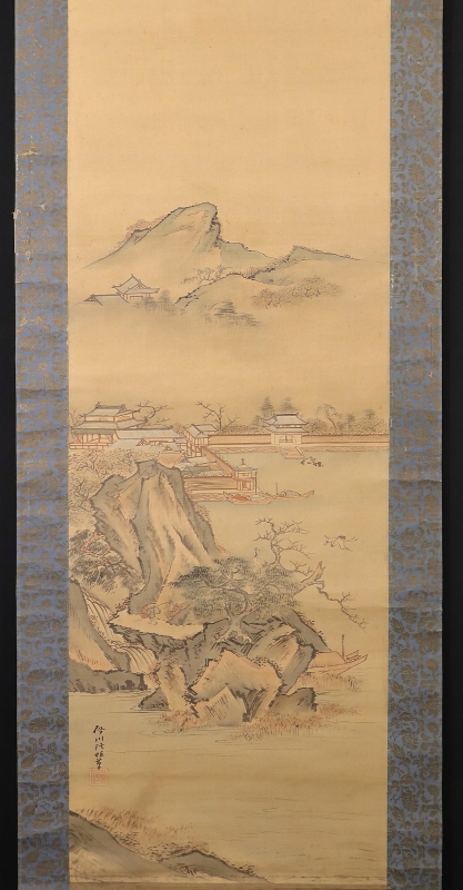 - 11061■【真作】狩野栄信 山水図 絹本 肉筆 8代目木挽町家狩野派 江戸狩野 掛軸