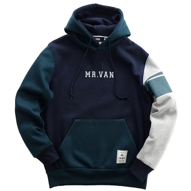 > 新品 MR.VAN ミスターヴァン 秋冬 裏起毛 フード パーカー M 紺 【va1934073_79_M】 メンズ プルオーバー ドッキング スウェット
