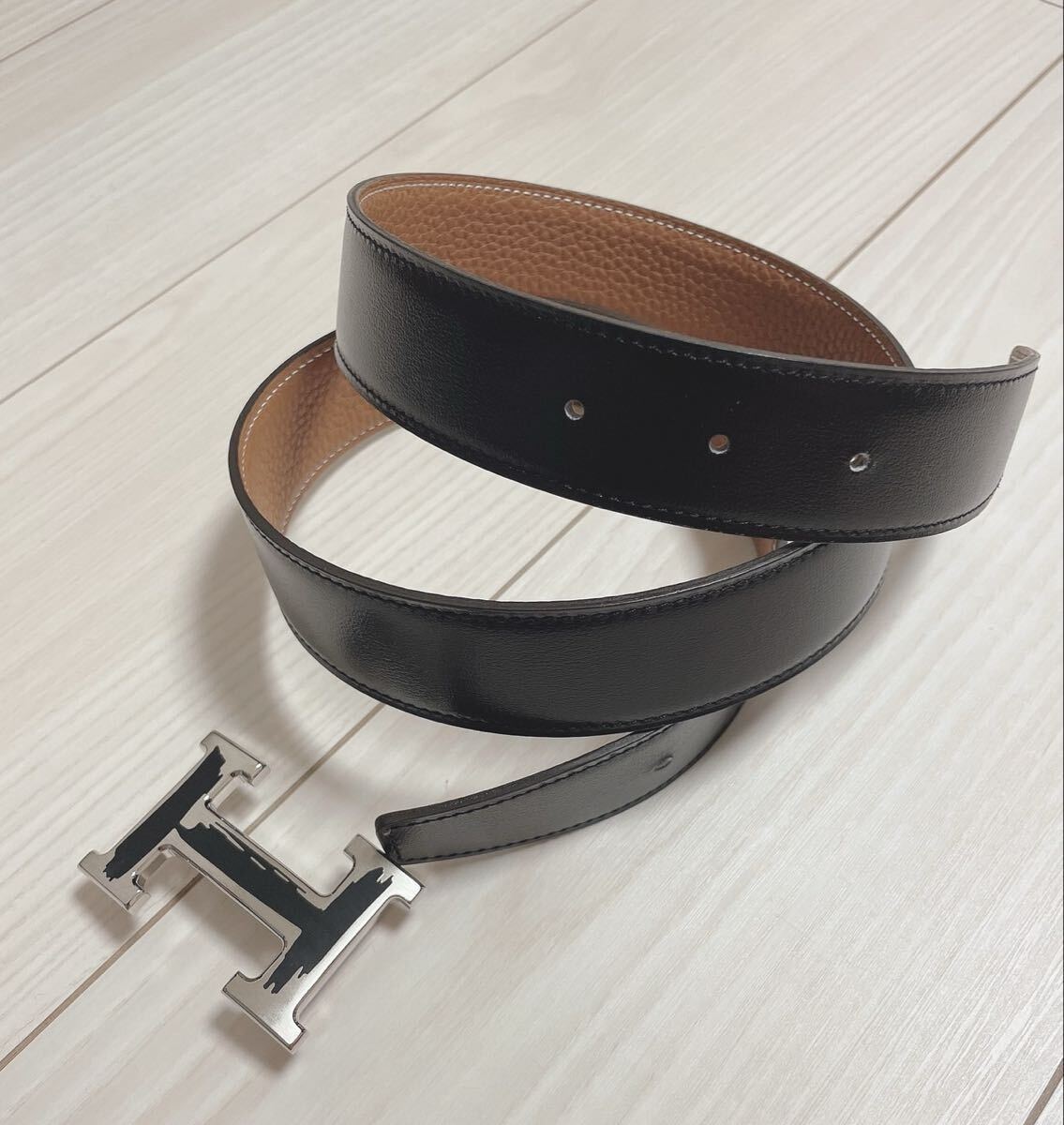 - エルメス Hermes レザーベルト HERMES リバーシブル ベルト ブラック 黒 Hベルト