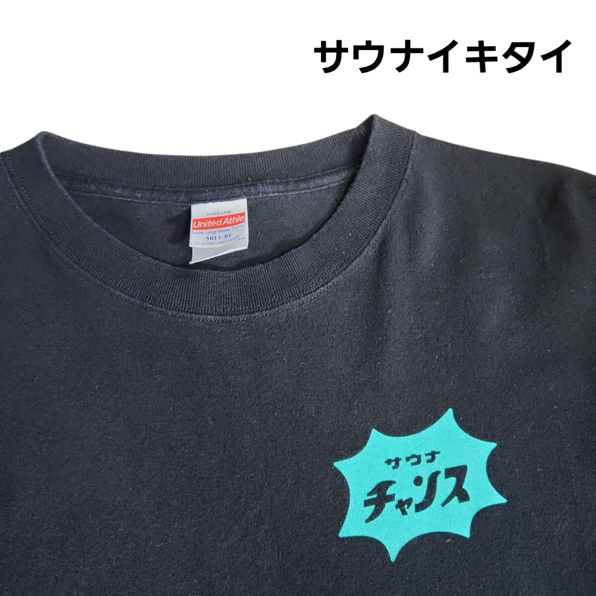 - サウナイキタイ ロングTシャツ 表記サイズXL 黒 サウナチャンス 両袖口に刺繍 84920