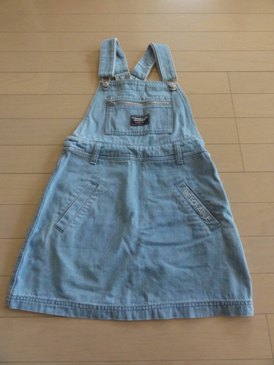 > 美品 LOVETOXIC ラブトキシック デニムジャンパースカート ライトブルー S(140)