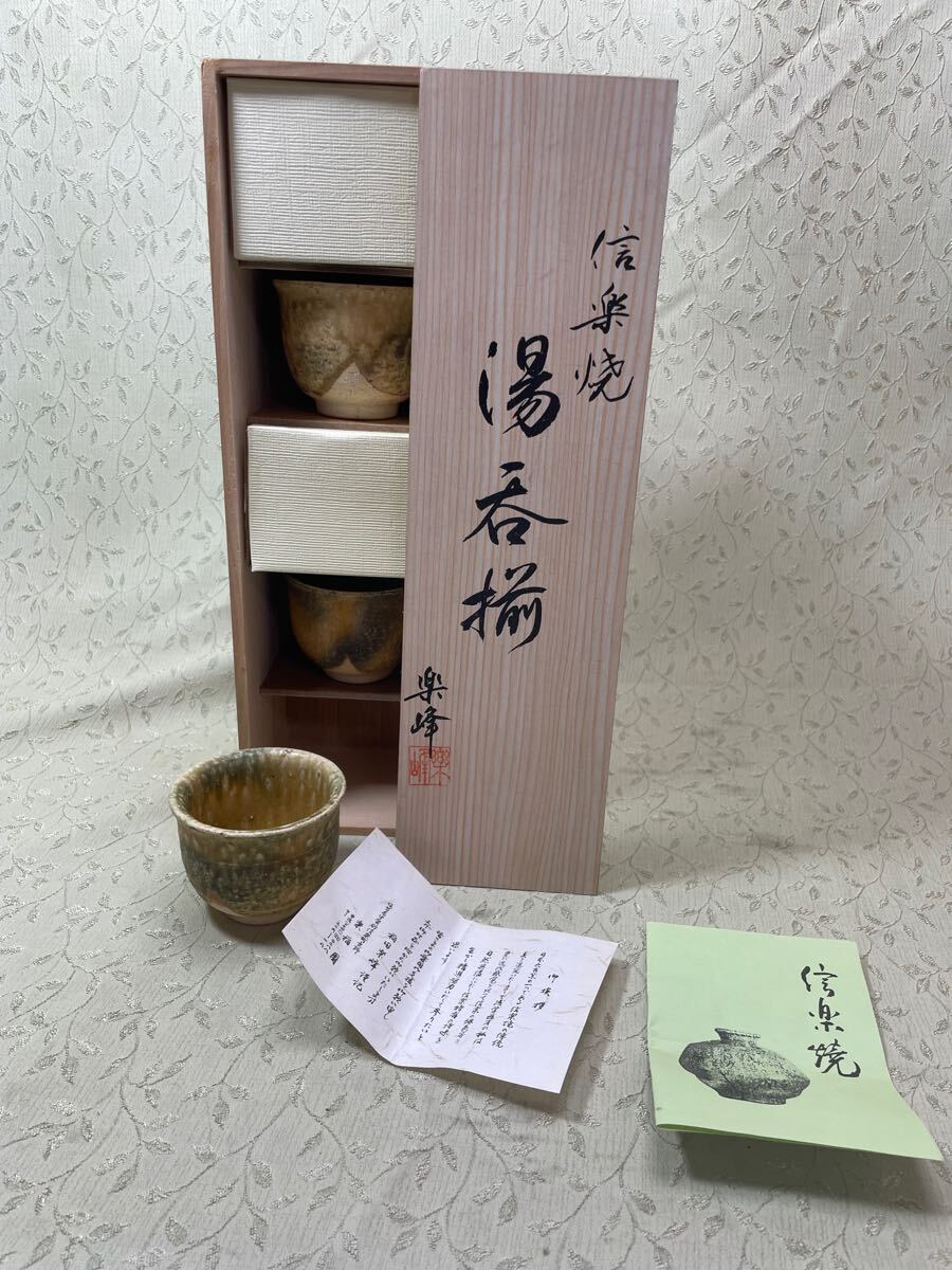 > ★(A-7) 信楽焼 楽峰 湯呑揃 お湯呑 5客 茶器 茶道具 共箱 栞付き 日本六古窯 [80]