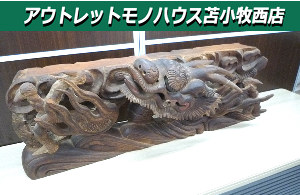 木彫り 龍 竜 彫刻 木造 詳細不明 レトロ 中古 横幅 約85cm 欠け 割れ 折れ 修復あり 苫小牧西店