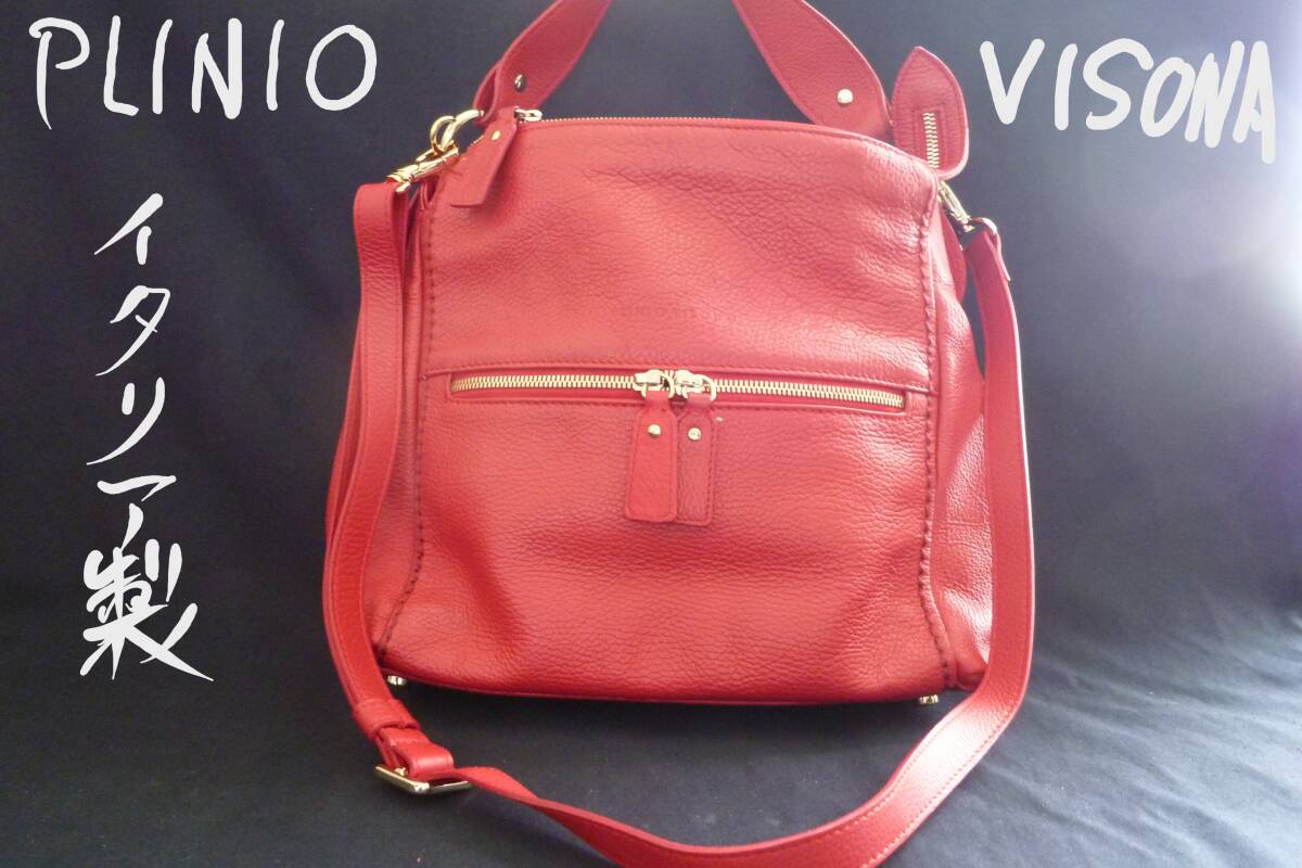 - 新品 イタリアの老舗ブランド PLINIO VISONA(プリニオ・ヴィソナ)日本未入荷 高級バック 6万円 革製品 レッド 肩掛けバッグ