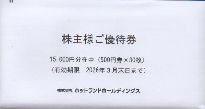 - ホットランド 株主優待券 15000円分 有効期限:2026年3月31日 定形外郵便対応可
