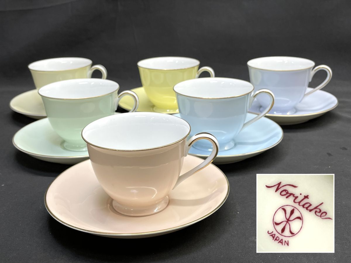 - 【R508】希少品 Noritake オールドノリタケ カップ&ソーサー 6色/6客セット 陶器製 淡い色 レトロ コレクション コーヒー ティーカップ