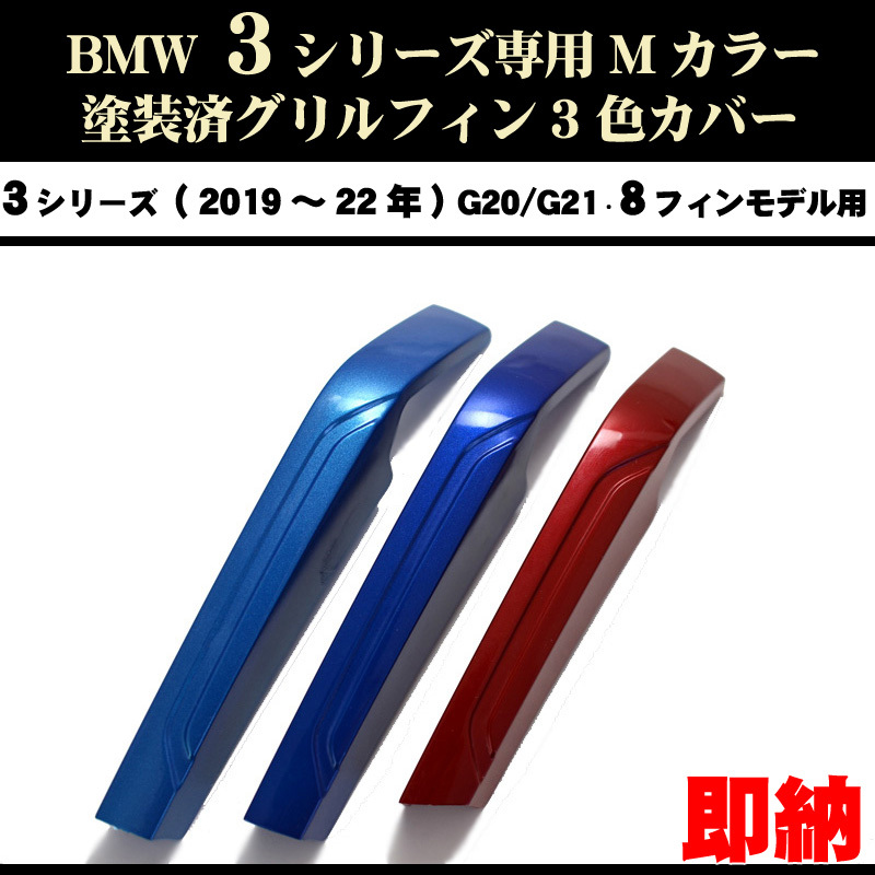 > 塗装済 BMW3シリーズ G20 G21 Mカラー 3色 グリルフィン(20年~22年8月) 8フィンモデル向 ネコポス便